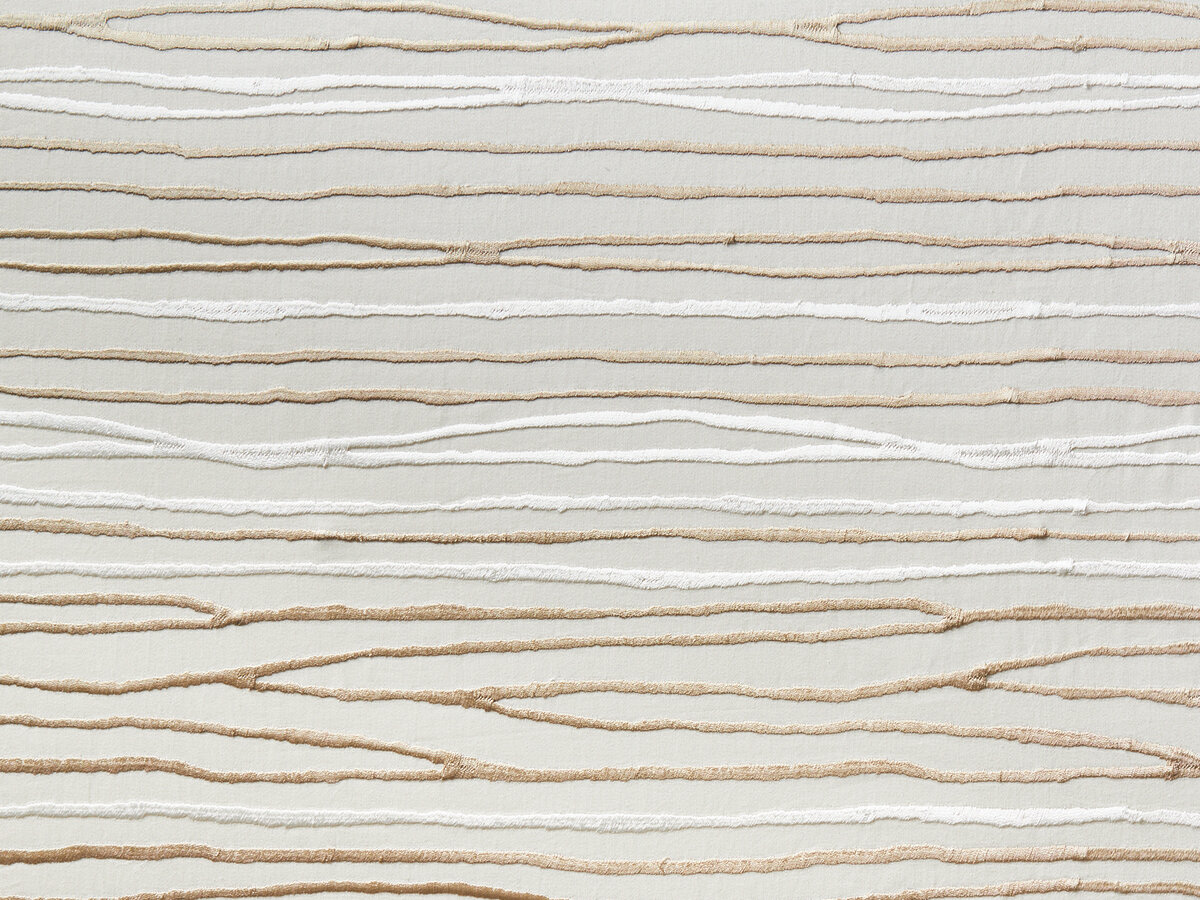 This elegant horizontal embroidery is the modern take on the woodgrain effect. Two embroidery colours interplay with the base colour of the elegant cotton satin. Draped in lavish waves, the horizontal pattern really comes into its own.