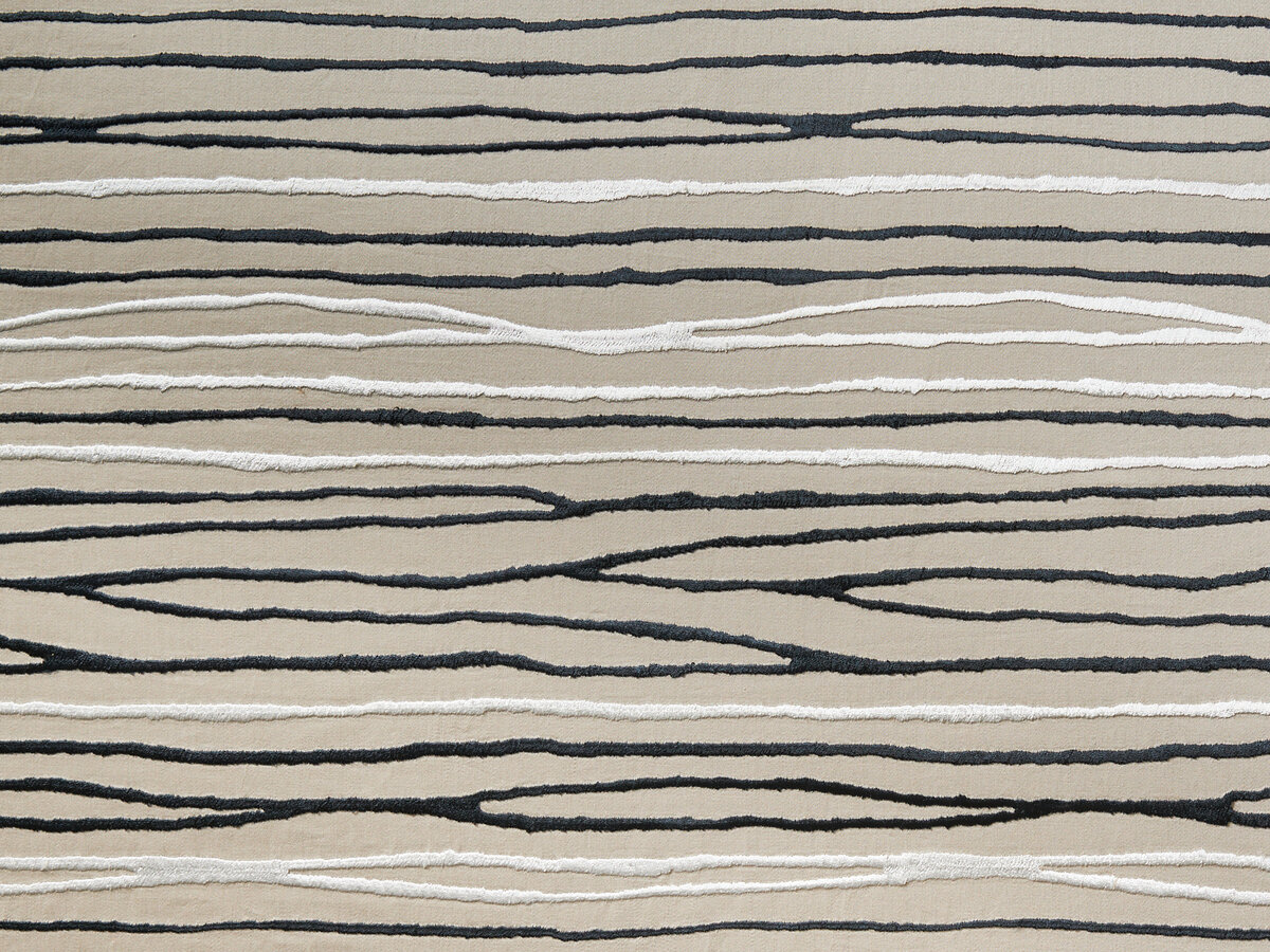 This elegant horizontal embroidery is the modern take on the woodgrain effect. Two embroidery colours interplay with the base colour of the elegant cotton satin. Draped in lavish waves, the horizontal pattern really comes into its own.