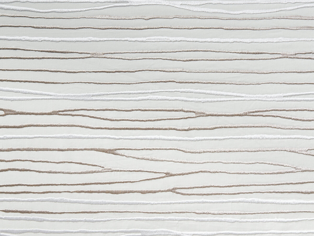 This elegant horizontal embroidery is the modern take on the woodgrain effect. Two embroidery colours interplay with the base colour of the elegant cotton satin. Draped in lavish waves, the horizontal pattern really comes into its own.