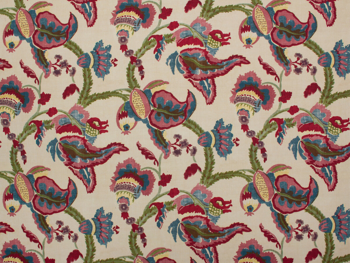 — Original block print document from the Travers print archive. — This classic traditional print is inspired by the Yorkshire Manor in England, which has been around since 1569. — Printed on a textured ground.